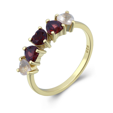 Zarif bayan beş parçalı güzel yüzük seti aylık kutlamalar şanslı mutluluk Birthstone kalpler gül kuvars Garnet düğün taraflar