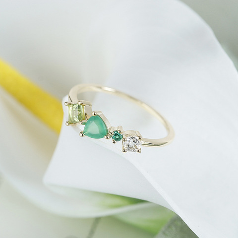 สีเขียวเงาไหลแสงสีขาวบุษราคัมสีเขียวนาโนเพอริโดสีเขียวคาลซิโดนีผิดปกติ4แหวนอัญมณีเครื่องประดับที่ดี