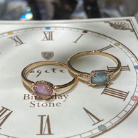 กรอบแบบโบราณทรงสี่เหลี่ยมแหวนหินลาบราดอร์สีฟ้าอ่อนประดับอัญมณีสีเงินธรรมชาติ